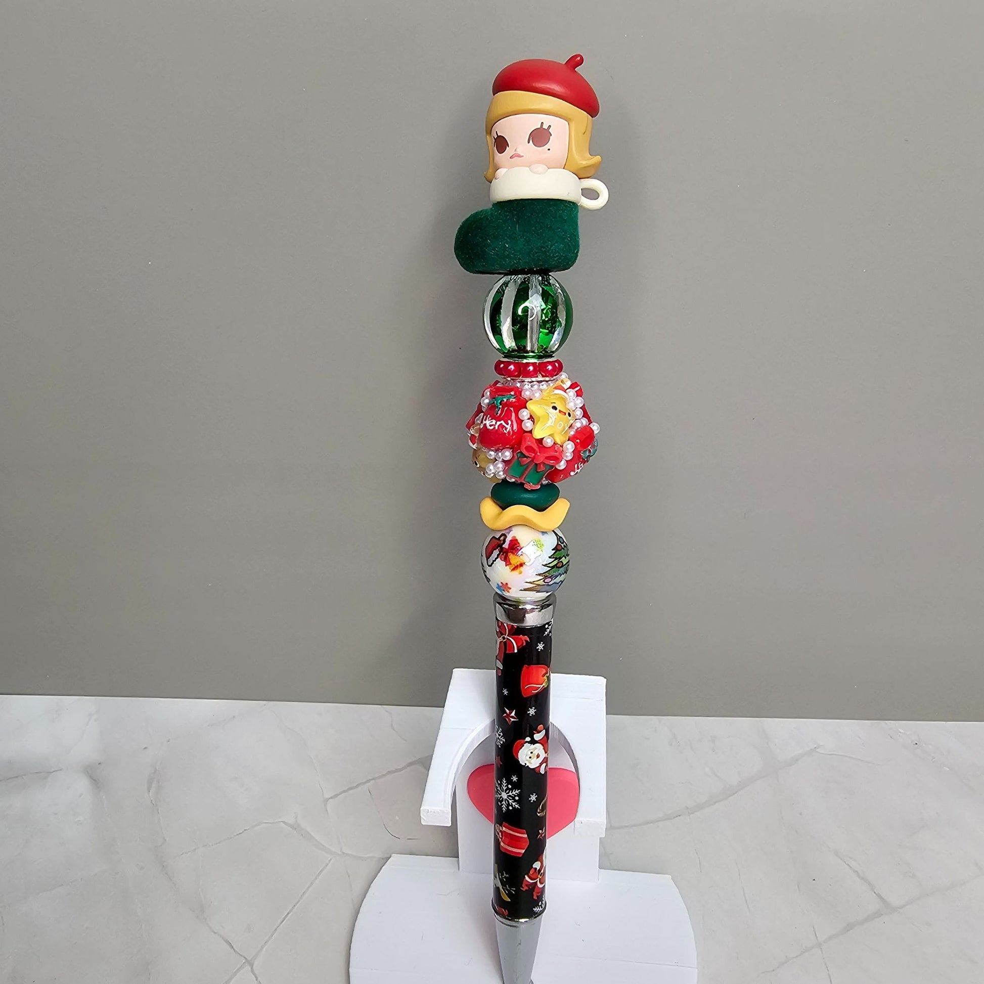 Celebrate the season with these adorable Popmart-style Christmas Character Pens! Each pen features a cute authentic Popmart holiday figurine topper, festive beads, and a patterned barrel full of Christmas cheer. With bright colors, fun textures, and collectible designs, these pens make perfect stocking stuffers, gift-bag goodies, or desk accessories. Spread a little holiday magic with every note, list, and doodle!