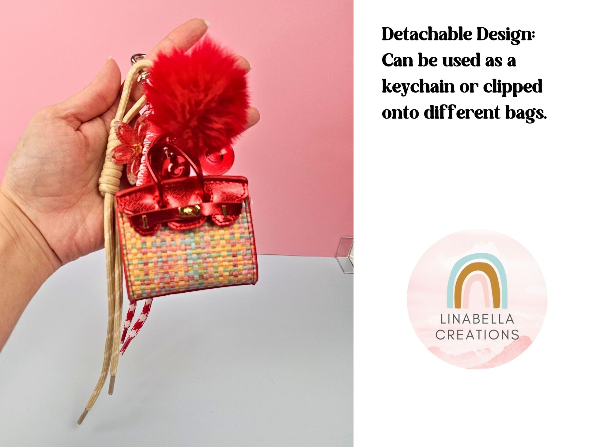 Add a touch of charm to your handbag with this Mini Purse Bag Charm! Perfect for accessorizing your favorite handbag, tote, or backpack, this handmade purse charm blends fashion and function effortlessly. Featuring a luxury keychain, this statement bag accessory makes the ideal gift for her.