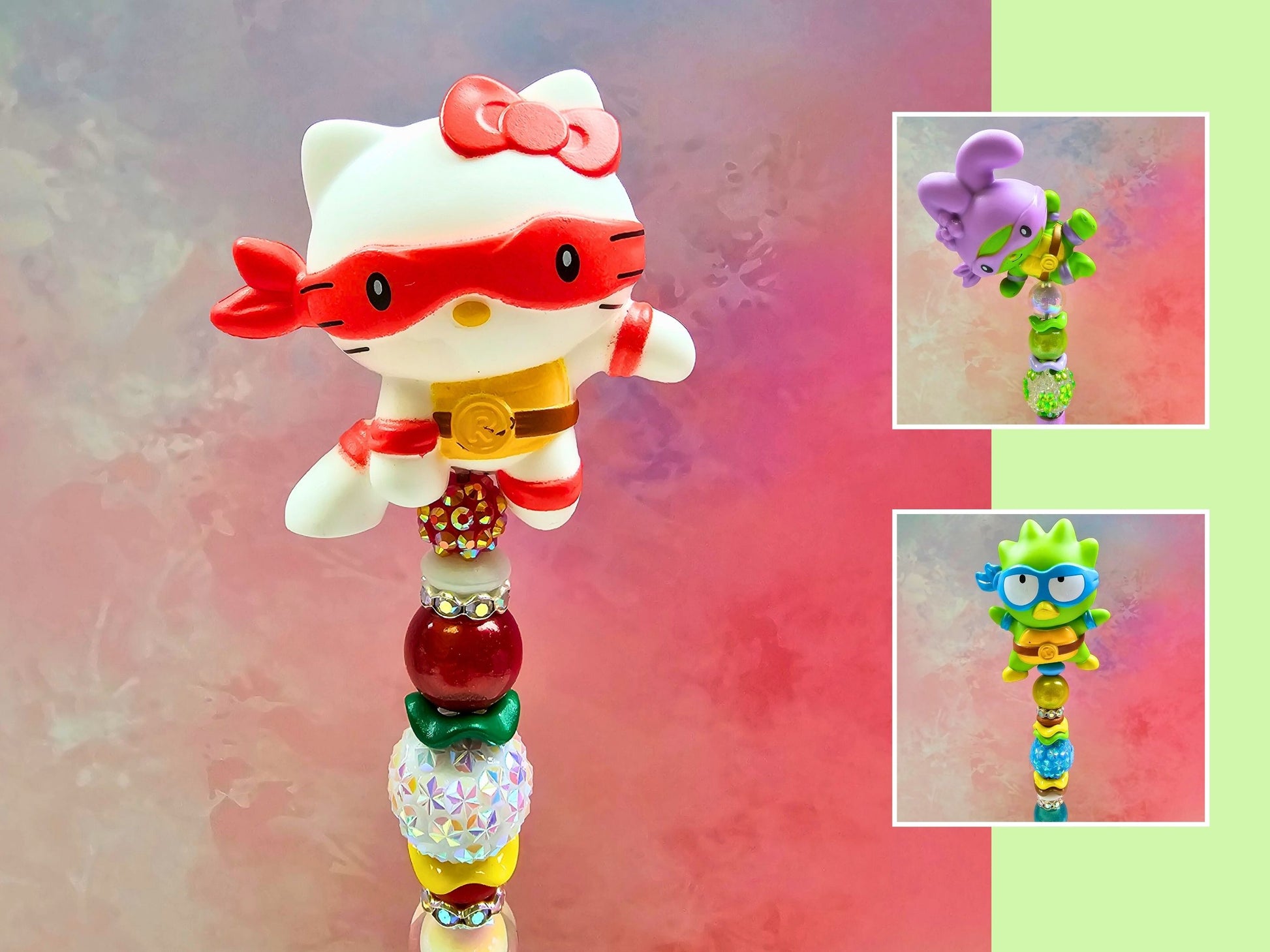 Beaded pens featuring the happy meal collectibles Sanrio Teenage Mutant Ninja Turtles